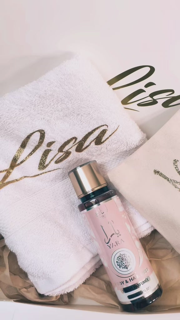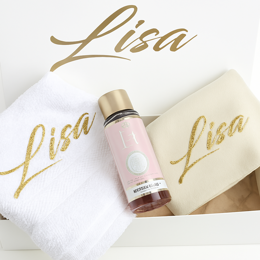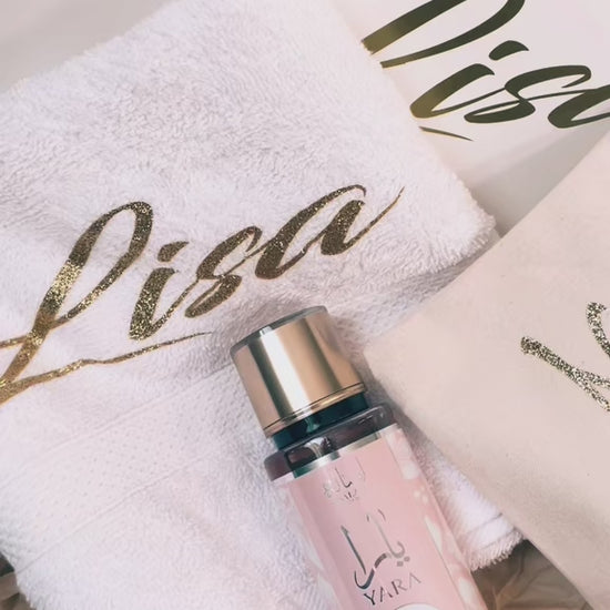 Une serviette de visage personnalisée : brodée avec un prénom ou un mot doux, en coton doux et absorbant.